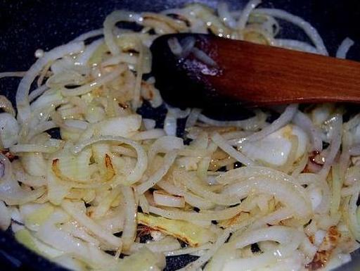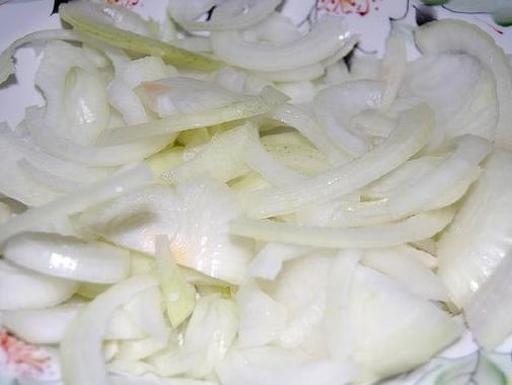 Slice the onion into half-rings.