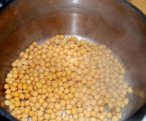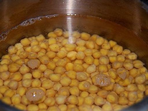 In advance, preferably the night before, soak the chickpeas in cold water. The next day, drain the water, cover the chickpeas with fresh water, bring to a boil, and simmer for about 1.5 hours until tender.