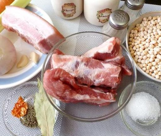 Prepare all necessary ingredients. Peel and wash carrots, onions, garlic, and celery stalks. Cut the ribs into individual portions.