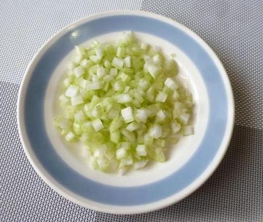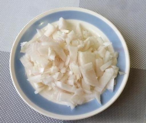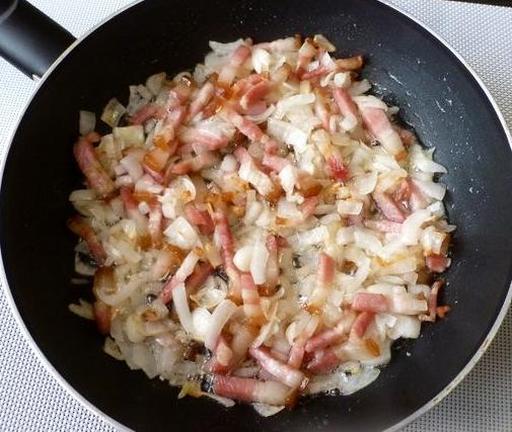 Heat 2 liters of water in a pot. Transfer the contents of the frying pan to the pot.