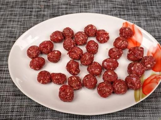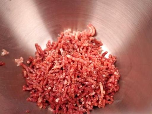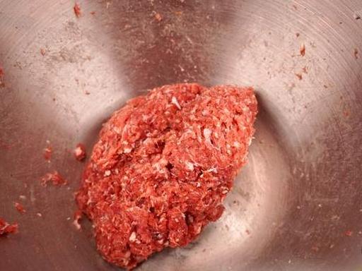 Mix, periodically beating the minced meat (by throwing it into the bowl), until firm.