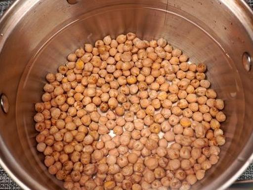 Rinse the chickpeas and cover them with water, ensuring the water level is 5 cm above them. Leave to soak for 8-12 hours in the refrigerator.