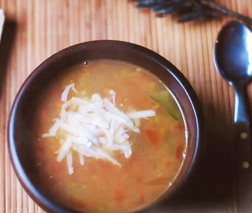 Minestrone is an Italian vegetable soup. This variation of the soup is prepared with beans, pasta, and cheese.
