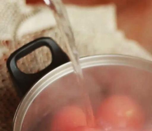 Boil water. Pour boiling water over the tomatoes for 1 minute. Then drain the water.