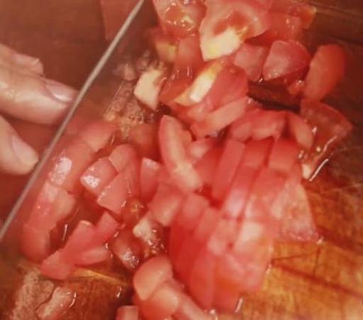 Peel the skin from the tomatoes. Cut them into small cubes.