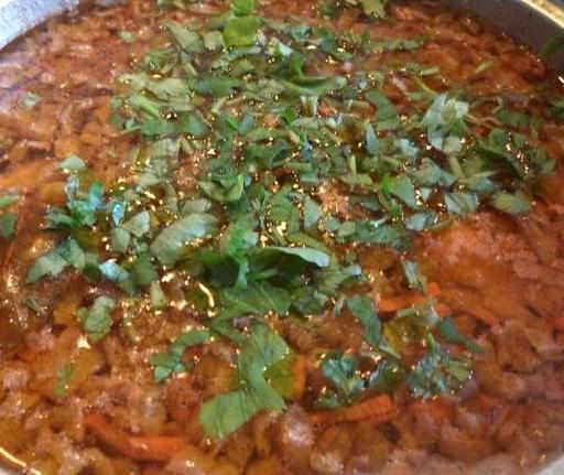 Add the fish and sautéed vegetables to the potatoes in the pot. Cook the mackerel soup for 10-15 minutes. Then add vermicelli and cook for another 5 minutes. Season with salt, add spices, crushed garlic, and herbs. Remove the soup from the heat and let it steep for 15 minutes.