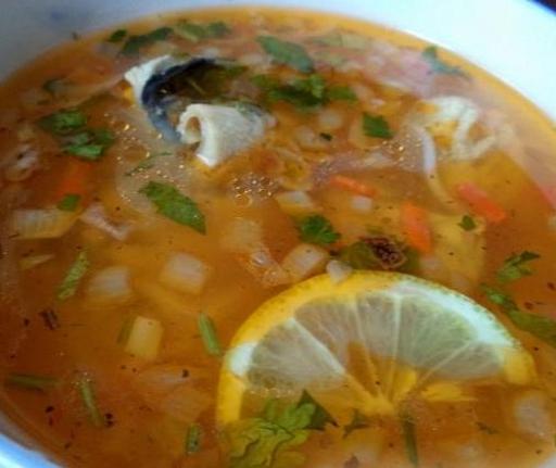 The simple mackerel soup is ready. Serve it with a slice of lemon.