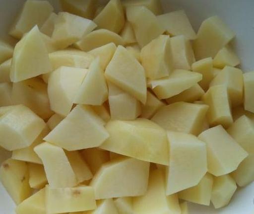 Add the chopped potatoes to the boiling water and cook over medium heat for 15 minutes.