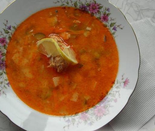 A can of mackerel or sardines is perfect for preparing a delicious and aromatic rassolnik. This rassolnik with canned fish is lighter than a meat-based one and cooks faster, as there's no need to prepare broth. Fish pairs wonderfully with pickled cucumbers, and pearl barley provides the heartiness.