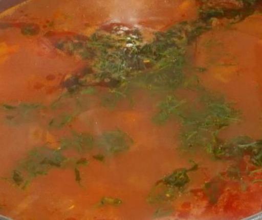 Add the chopped dill and ground black pepper to the soup to taste. Stir and remove the pot from the heat.