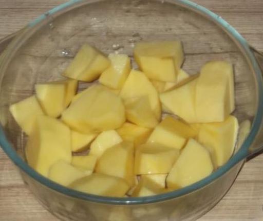 Peel, wash, and dice the potatoes into medium-sized cubes.