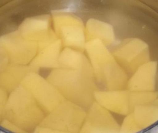 Place the diced potatoes in a pot, add 2 liters of water, and salt. Bring to a boil, then reduce the heat, cover, and cook for 15 minutes.