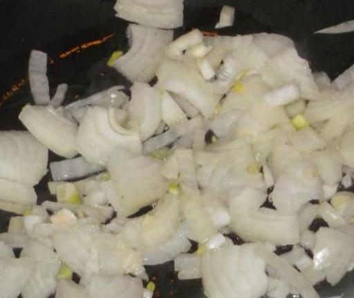 Heat 1 tbsp of vegetable oil in a frying pan. Sauté the onion over medium heat for about 5 minutes until golden, stirring occasionally.