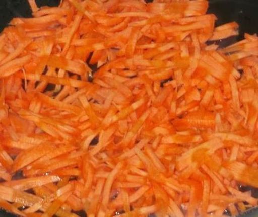 In a separate pan, heat 2 tbsp of oil and sauté the carrot over medium heat for 7-8 minutes until soft.