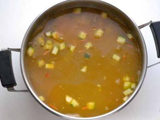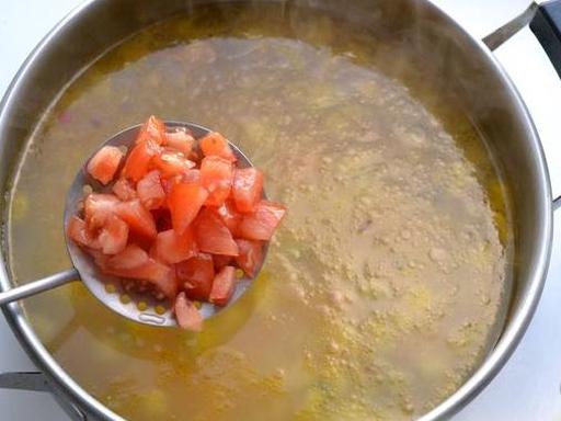 Add the diced tomato to the soup. Cook for about 5 minutes.