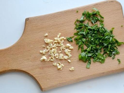 Peel the garlic. Finely chop the garlic and parsley leaves.