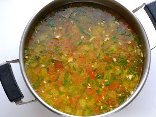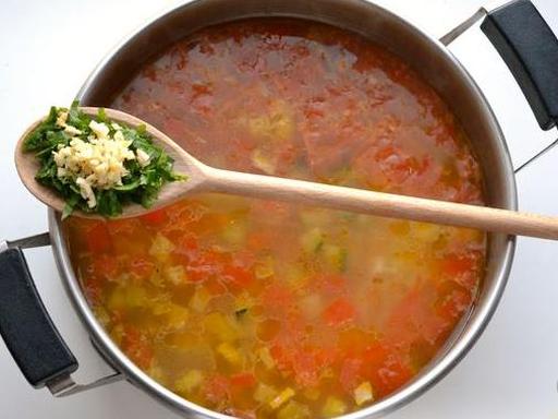 Add the chopped garlic and parsley. Cook the soup for about 1 minute.