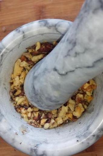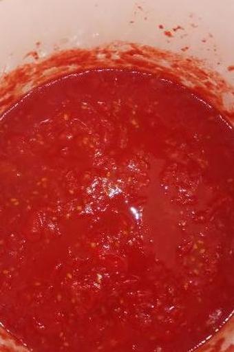 Помидоры обдайте кипятком, очистите от кожицы и измельчите (используя мясорубку или блендер).