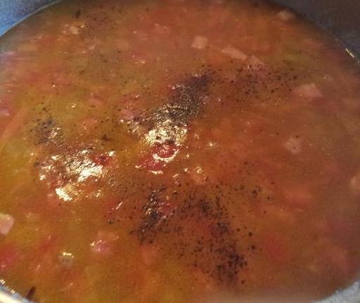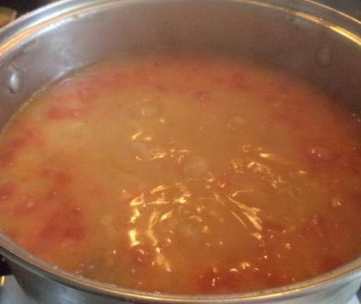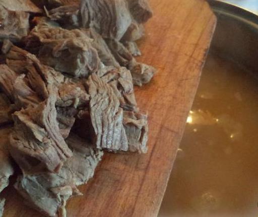 Готовое мясо извлеките из бульона. Бульон доведите до кипения, добавьте замоченный горох и варите 30 минут.