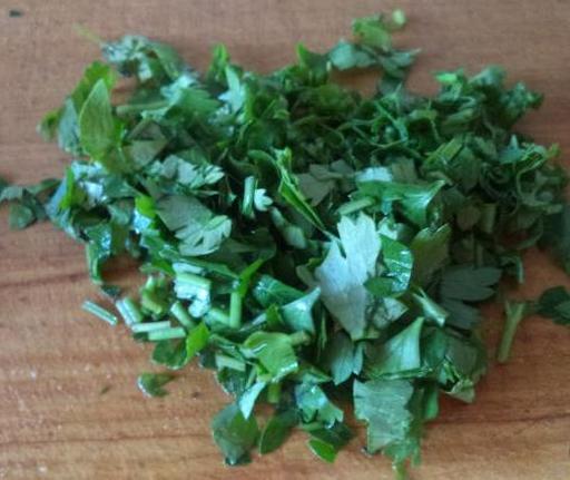 Зелень петрушки вымойте и мелко нашинкуйте.