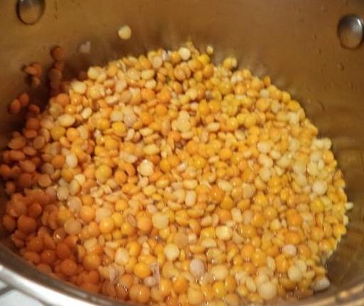 Горох тщательно промойте и замочите в теплой воде на 2 часа.