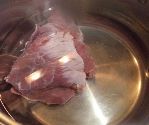 Мякоть говядины вымойте, залейте холодной водой, доведите до кипения. Снимите образовавшуюся пену. Варите на слабом огне под крышкой до готовности в течение 60-90 минут.