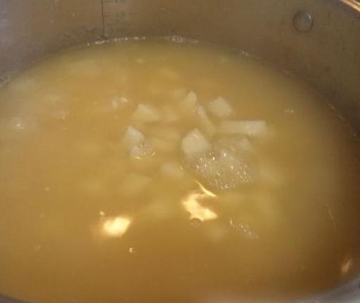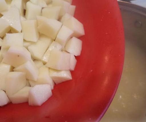 Добавьте нарезанный картофель в кастрюлю и варите еще 20 минут.