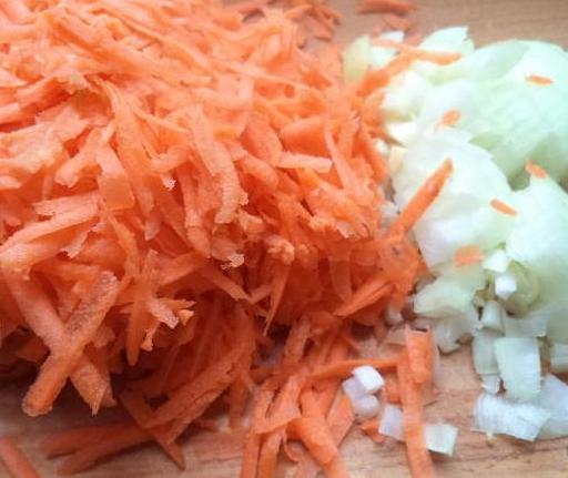 Морковь очистите, вымойте и натрите на крупной терке. Лук очистите, вымойте и мелко нарежьте.