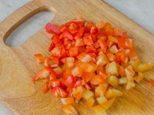 Очистіть перець від насіння та перегородок і наріжте невеликими шматочками.